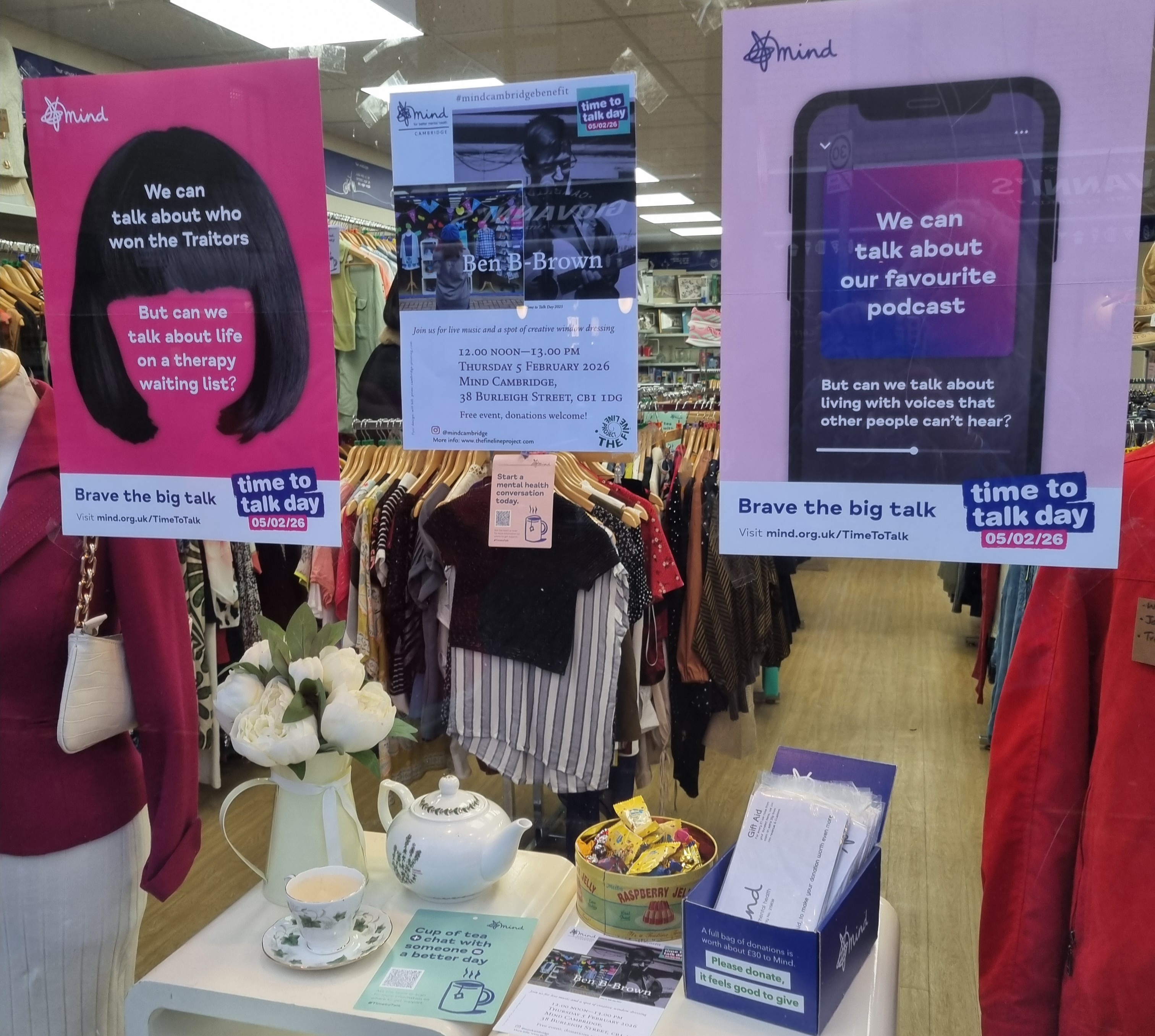 “I am thrilled to get the chance to support Mind Cambridge’s event and the Time to Talk campaign, as mental health is extremely close to my heart. My life improved immeasurably once I started being more open with friends, family and even strangers. It’s a pleasure to help a charity and initiative that is encouraging the same.” Ben B-Brown, February 2026